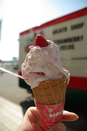 益子のいちご畑レストランでジェラードアイスを売っている。そこでは茂木や二宮と似たいちごのアイスがあった。作り方も見た目も一緒。味はやっぱり一緒。細かな味の違いはあるのかも知れないが、ほとんどわかんないなぁ。どれも美味いです。400円はちと高いなぁ。
