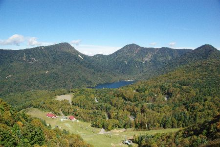 日光から国道120号をさらに奥に進んで群馬県の丸沼高原スキー場に行ってきた。もちろんスノボーしに行ったわけではなく、紅葉が目的である。ロープウェーが運行していて山のかなり上まで行けるので紅葉が綺麗なら良いなと思ったのだが、やはりここも紅葉にはまだ早かった(^^;しかし、眺めは良かった。ちなみに山とは白根山の事だが、ロープウェーの頂上駅の奥側には白根山への登山道入り口がある。白根山の頂上までロープウェーで行けるという話をどこかのサイトで見た事があったが、てっきり白根山の頂上近くにロープウェーの駅が有ると思い込んでいた。よく調べもせずにスキー場に行き、楽して白根山の頂上まで行ってこの前の白根山登山のリベンジしちゃろうと思ったら、敵陣に踏み込んだ所で撃沈しました。というか戦っていないので不戦敗。一目散に逃げてきました。だって、登山時間がこの前の登山道と同じか、この前の方が早いかも知れないから。ロープウェーの往復料金¥1,800-払って登山に掛かる時間が同じって泣けてきます。ただ、登山道は楽らしいとの噂もあるが。