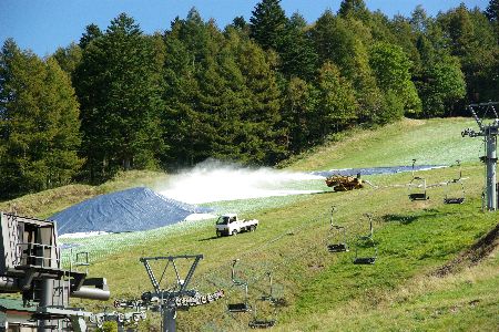 スキー場では早くも降雪機で雪降らしてた。秋らしい秋が来ない内に雪が見れるってのは不思議だ。来月にはオープン予定らしいのだが、今から雪を作っておいて溶けないのだろうか。いくら山だからと言っても、今年は温暖化でまだまだ暖かいし、太陽が出ていれば汗ばんでしまうくらいなのに。(俺だけかも?)